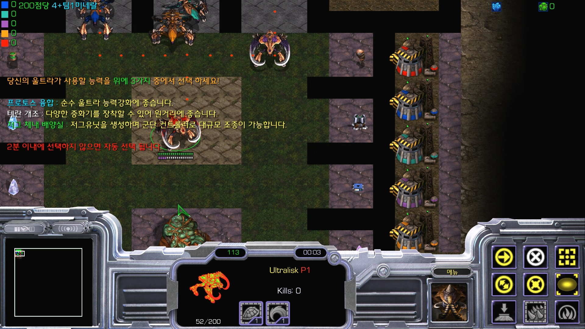 3. 위 사진처럼 3가지 종류의 울트라(프로토스, 테란, 저그)를 선택해서 플레이 합니다.
